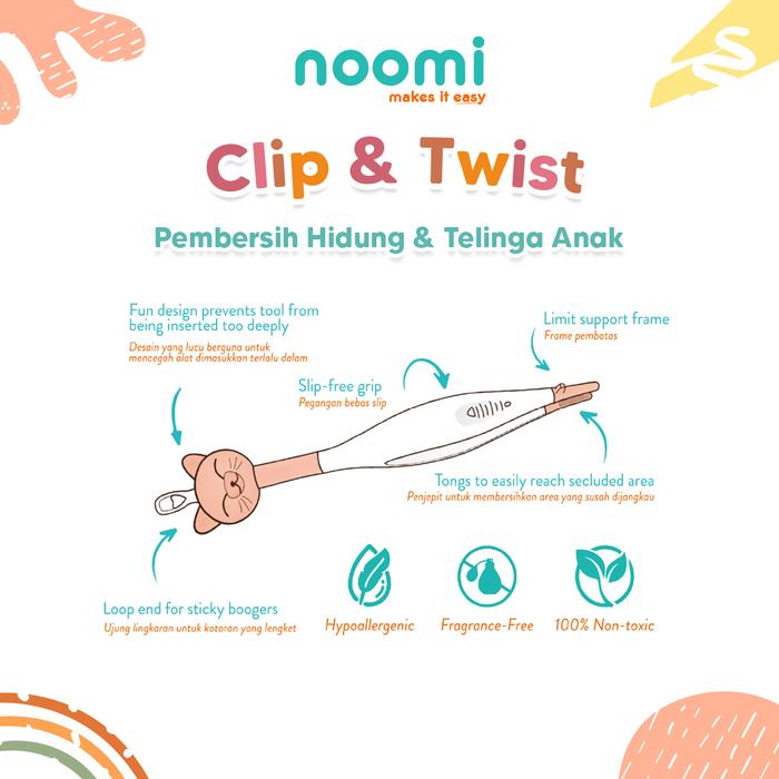 Noomi - Clip & Twist | Alat Pembersih Telinga Hidung Bayi dan Anak