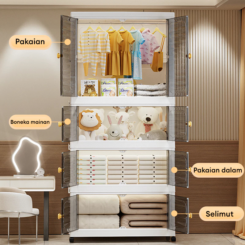 Lemari Pakaian Plastik Lipat/Lemari Pakaian Anak/Lemari Penyimpanan Multifungsi/Lemari Sepatu