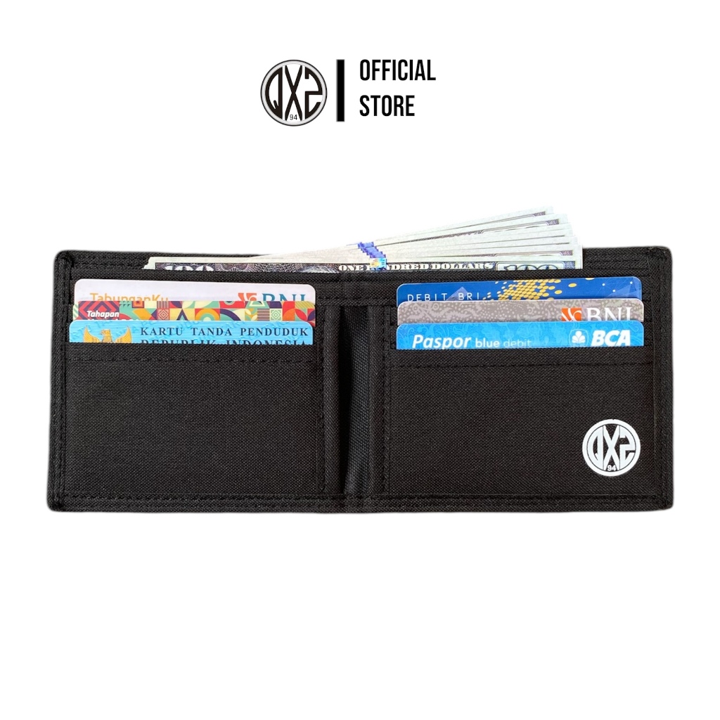 QXZ94 DOMPET PRIA KULIT KANVAS FULL PRINT MOTIF PENDEK LIPAT KARTU TIPIS POLOS KOMBINASI HITAM