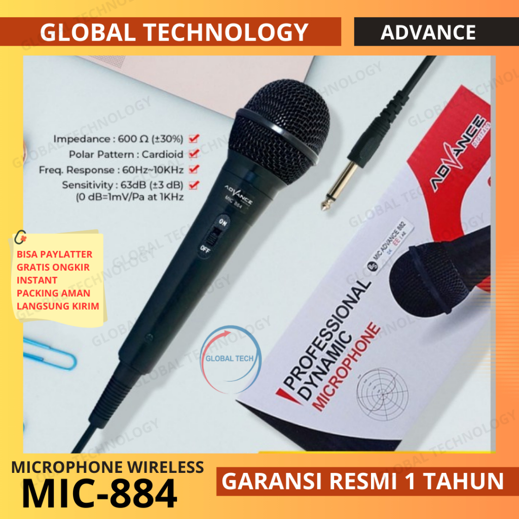Advance MIC KABEL Microphone MIC884 / MIC-884 / Mic 884 Kabel Mikrofon Dynamic Microphone Mic Karaoke