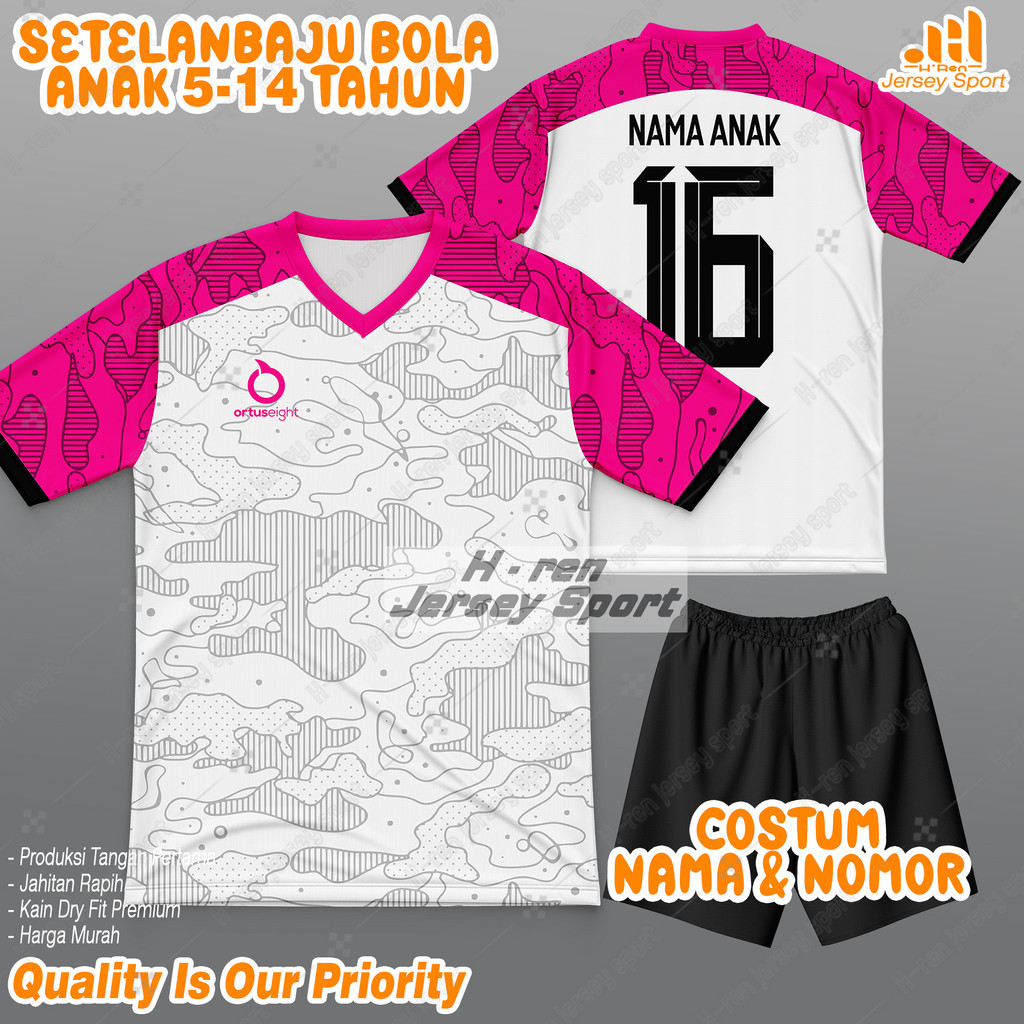 Costum Sablon Nama Nomor Setelan Baju Bola Jersey Anak Junior Terbaru Kaos Futsal Voly Sd Smp