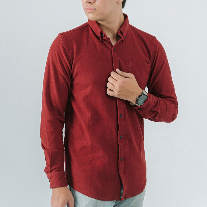 Loku Kemeja Pria Lengan Panjang Katun Pique | Original Cotton Pique Basic Shirt