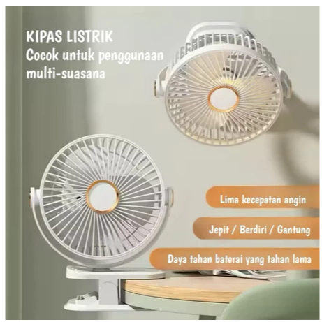 KIPAS ANGIN 20000MAH KIPAS ANGIN JEPIT MINI USB LAMPU PORTABEL 2 IN 1 FANS CLIP DESKTOP USB CHARGER