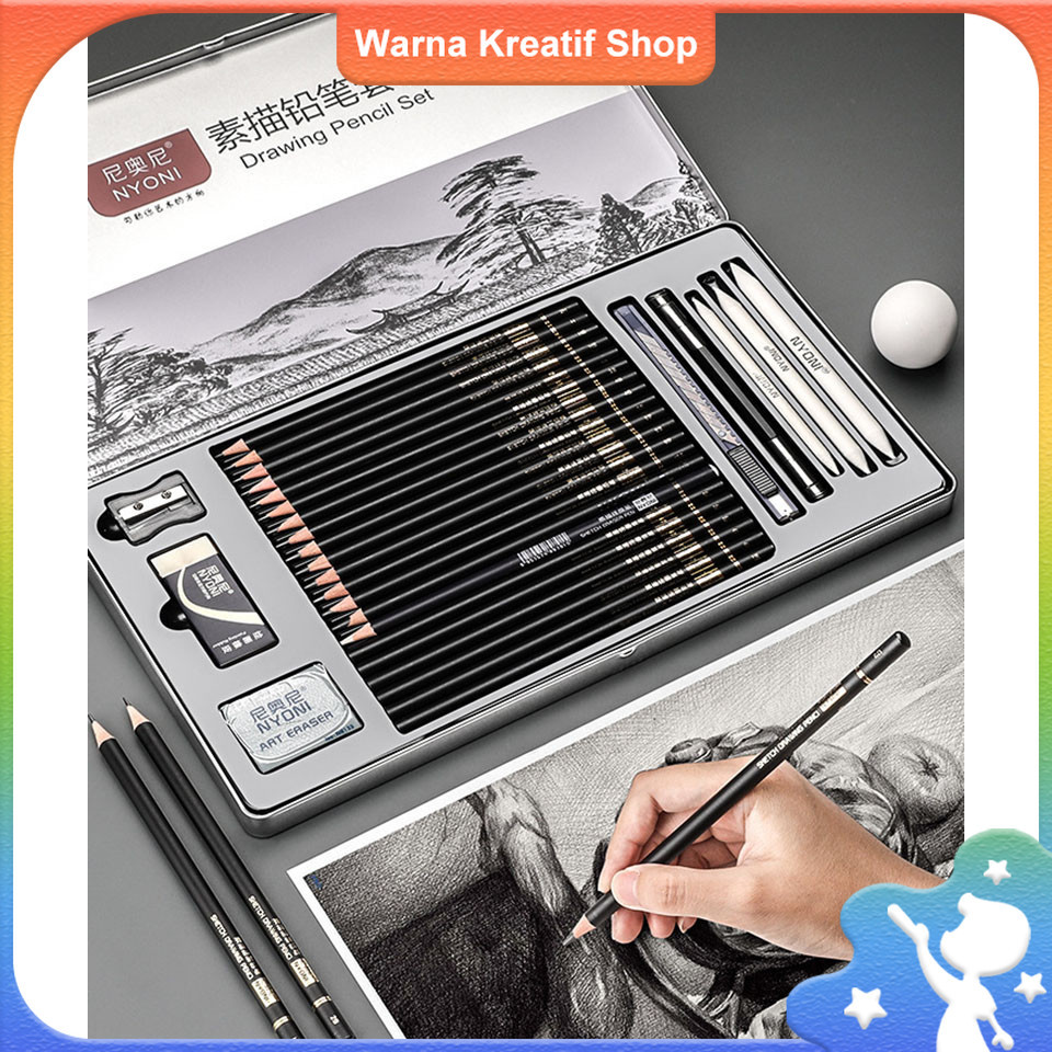 29 Pcs Art Sketch Drawing Pencil Set Including Paper Eraser Pen Pencil Sharpener Kneadable Eraser Art Knife Extender