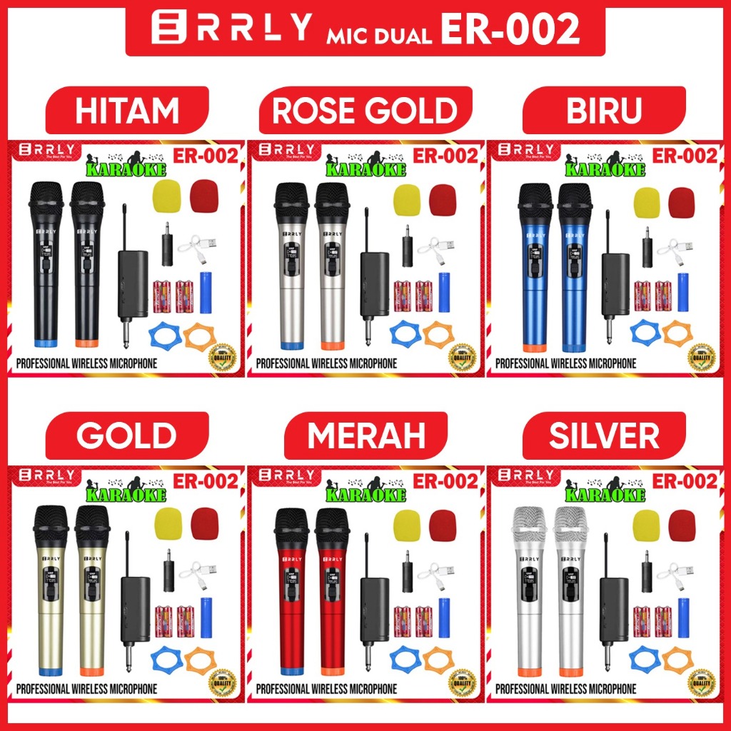 Mic Karaoke Microphone Wireless Tanpa Kabel 2MIC Dual Digital LED Mic Karaoke GENGGAM