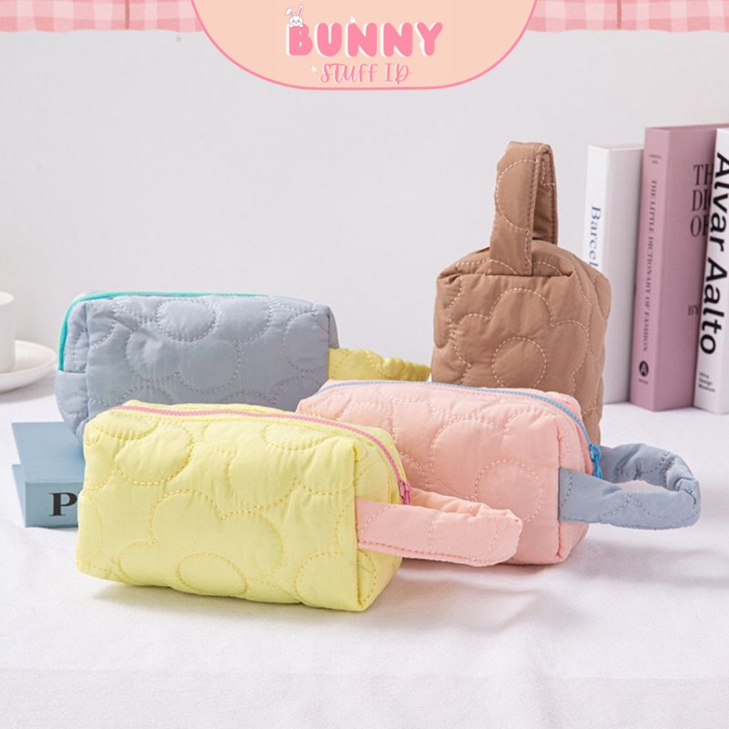 KOREAN PREMIUM POUCH PUFFY MAKEUP TEMPAT KOSMETIK HANDLE PASTEL