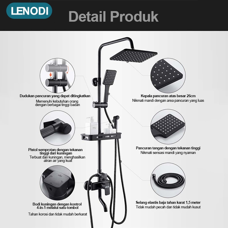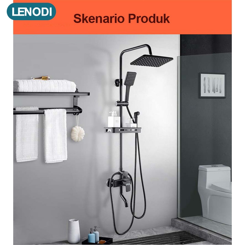 Lenodi Sus 304 Shower Set Paket Lengkap Shower Kotak/Stainless Shower Dan Bulat Kamar Mandi Rain Shower
