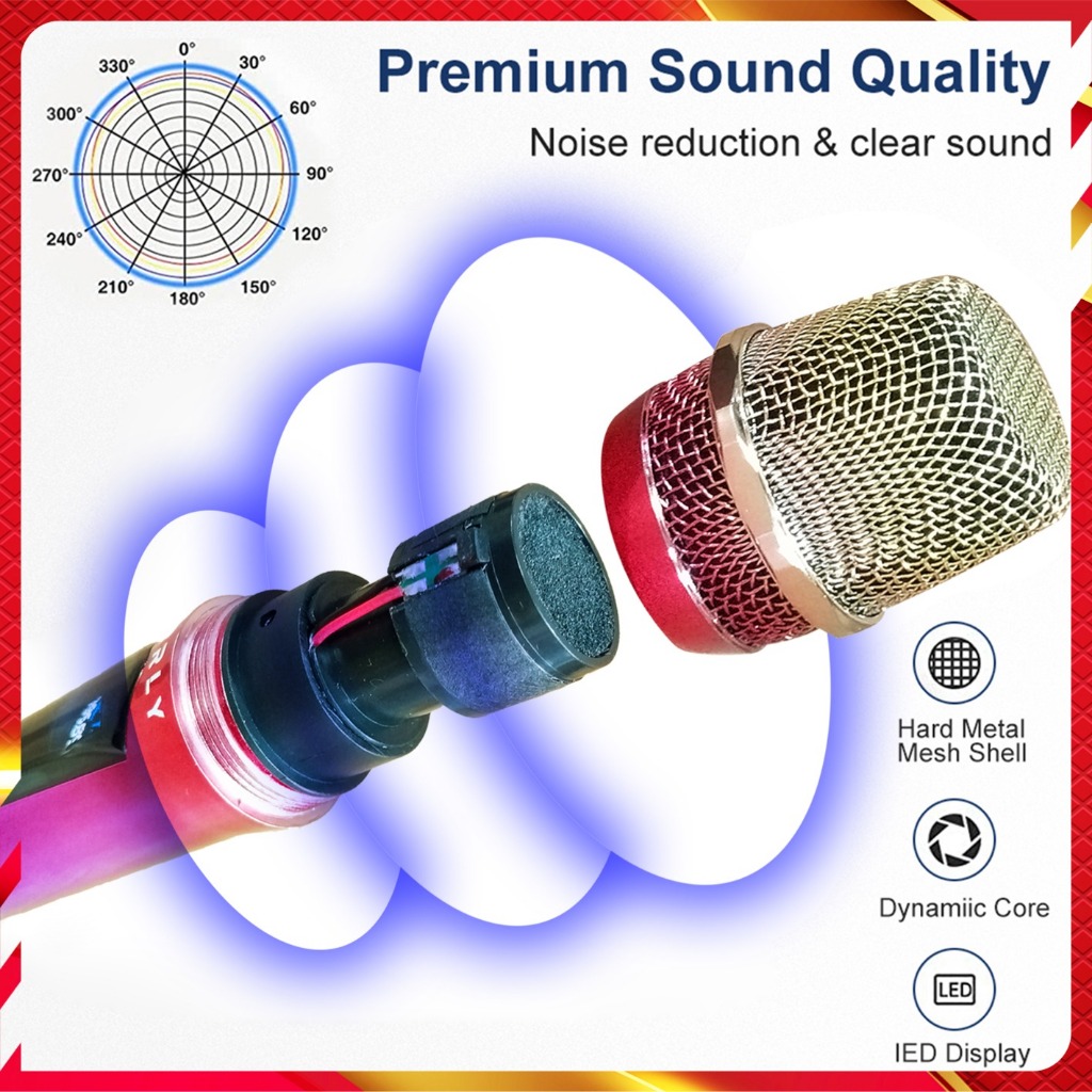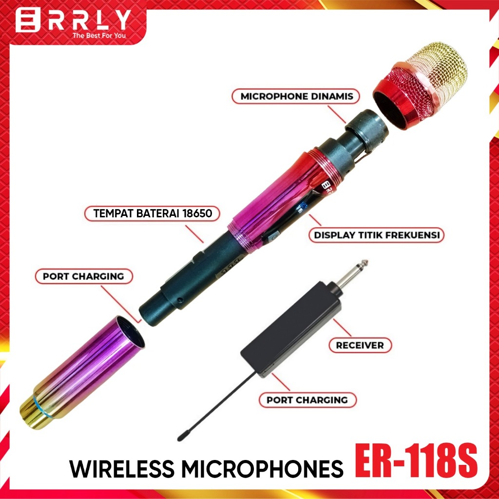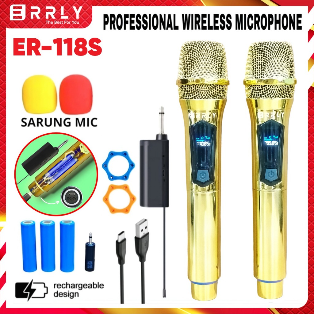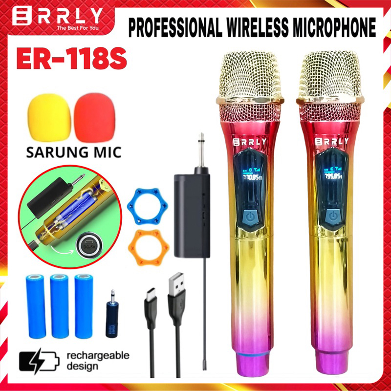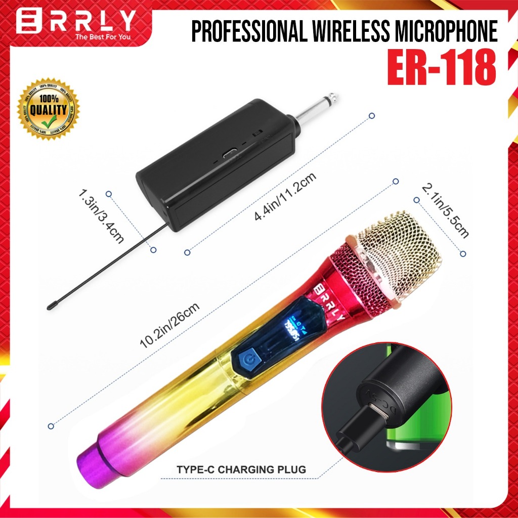 Mic Karaoke Wireless Microphone Tanpa Kabel ERRLY YF118 SINGLE / YF118S DUAL Warna CROME Rainbow Pelangi Mic Penagkap Wireless MIC Genggam Mic Wireless Karaoke ( BATERAI 18650 DAPAT DISI ULANG )"