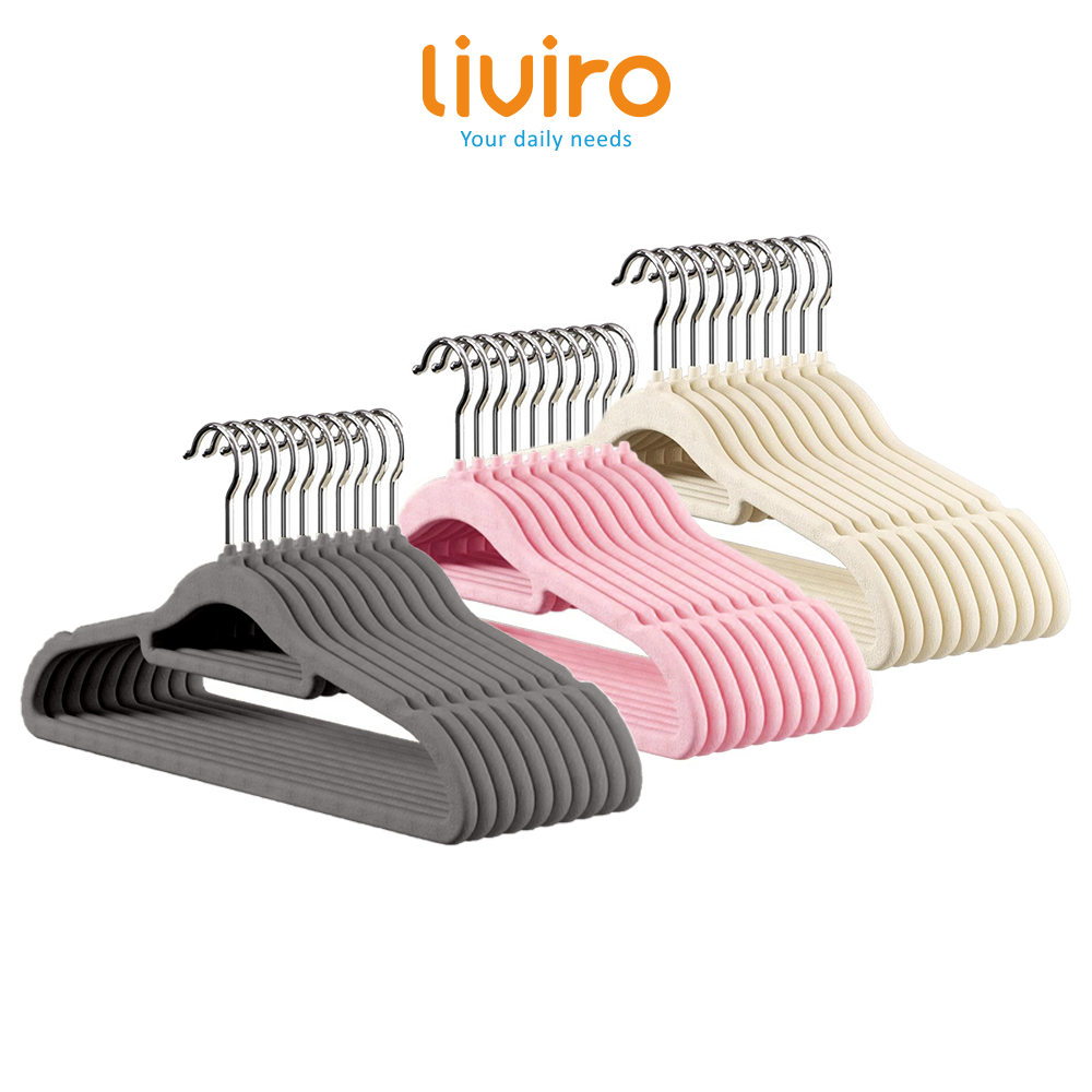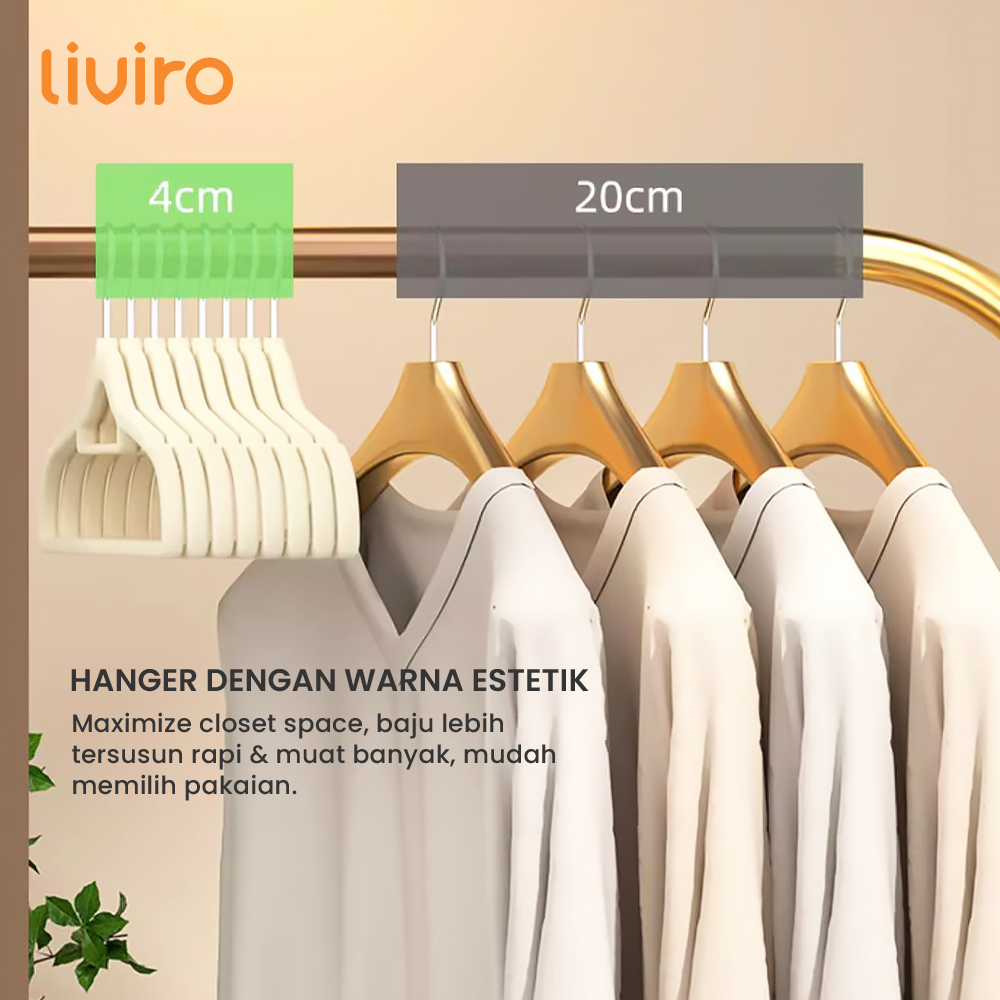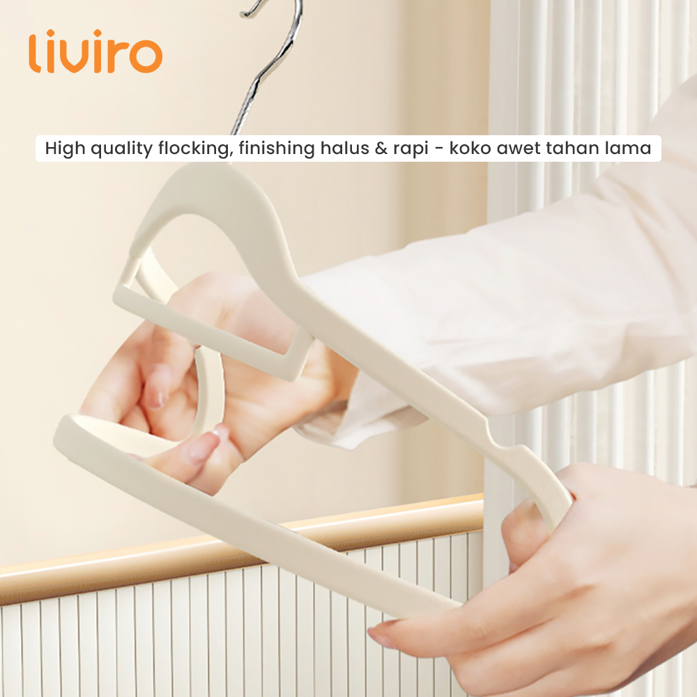 Liviro 1 Set Hanger Baju Dewasa Anti Slip Gantungan Bludru Serbaguna Kuat Anti Patah Isi 10 Pcs