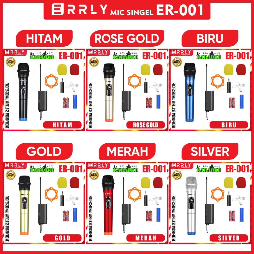 ERRLY Professional Microphone 1Mic SINGLE Wireless UHF Mikrofon Mic Karaoke LED Display Bisa di Charger