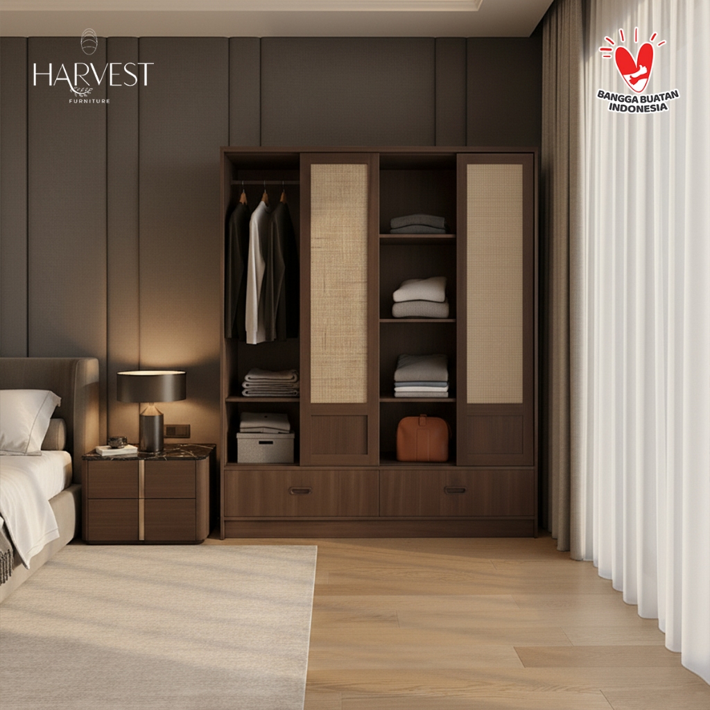 Harvest Furniture Lemari Pakaian Baju 4 Pintu Murah Modern Minimalis