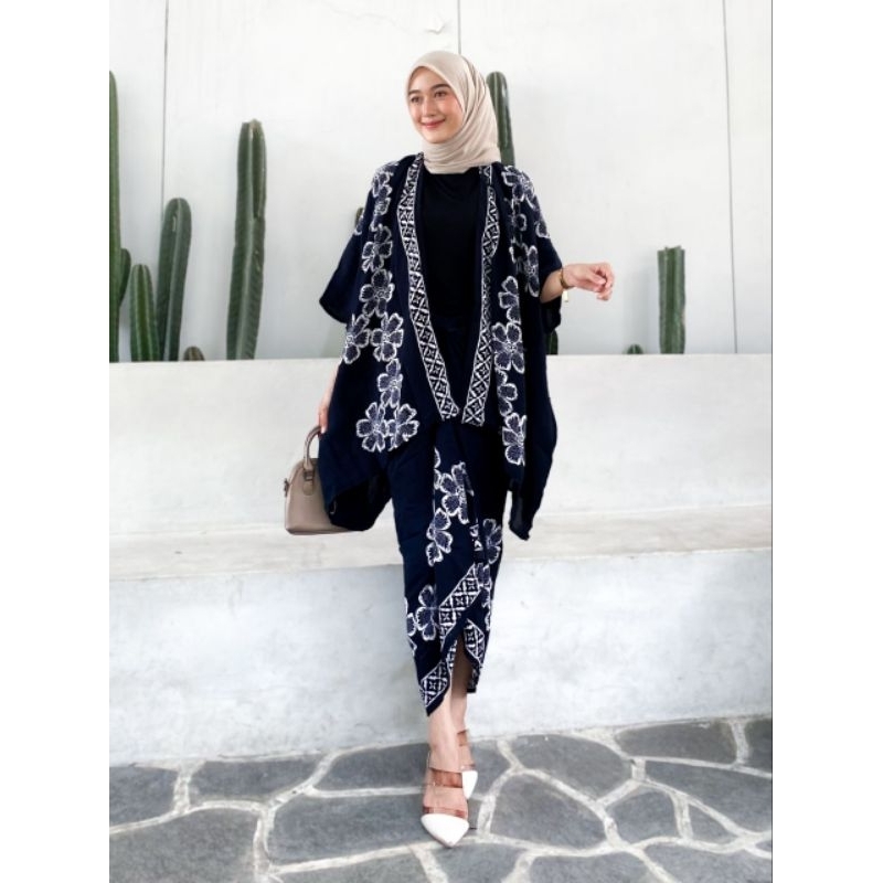 SET KEBAYA MODERN OUTFIT KONDANGAN SIMPEL ONE SET BATIK OUTER ROK LILIT KIMONO WANITA SETPRADA