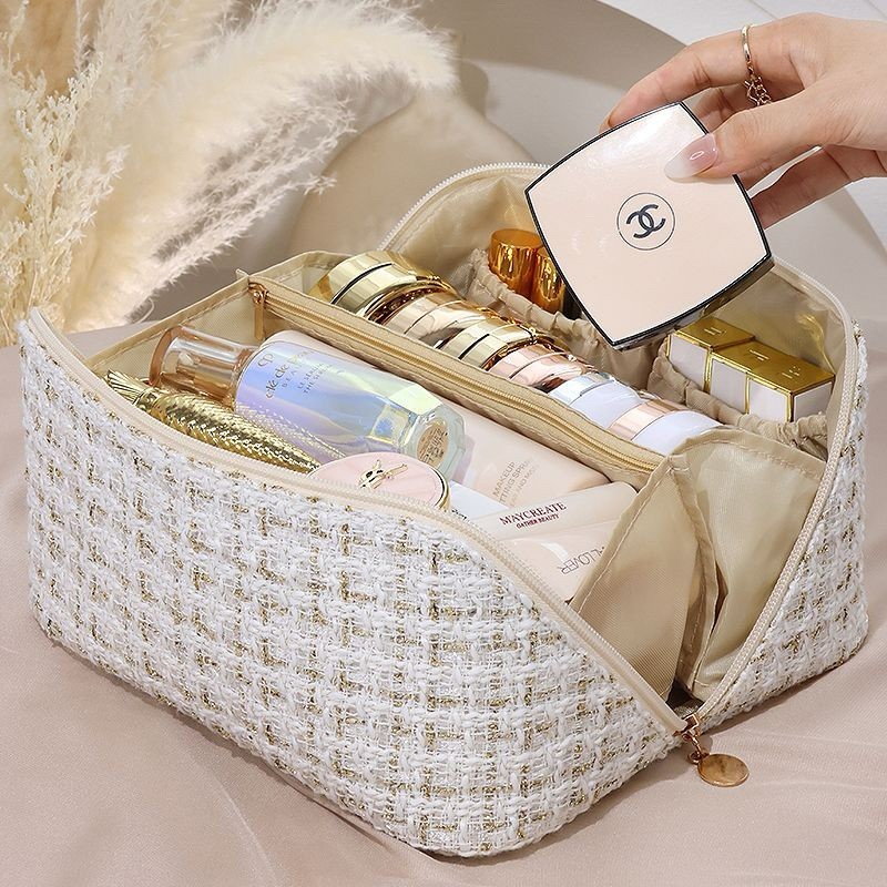 JJ-785 TAS KOSMETIK POUCH MAKEUP LIPAT TRAVEL POUCH WANITA POUCH KOSMETIK TWEED RAJUT JUMBO / POUCH MAKE UP / TEMPAT ALAT MAKE UP / POUCH SKIN CARE / TAS SKIN CARE / TEMPAT MAKEUP