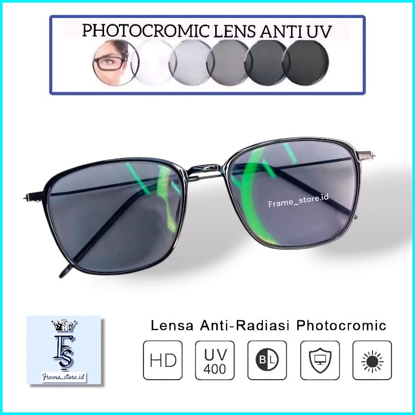 Kacamata Photocromic Lensa Anti Radiasi Bluecromic Frame Uniseks