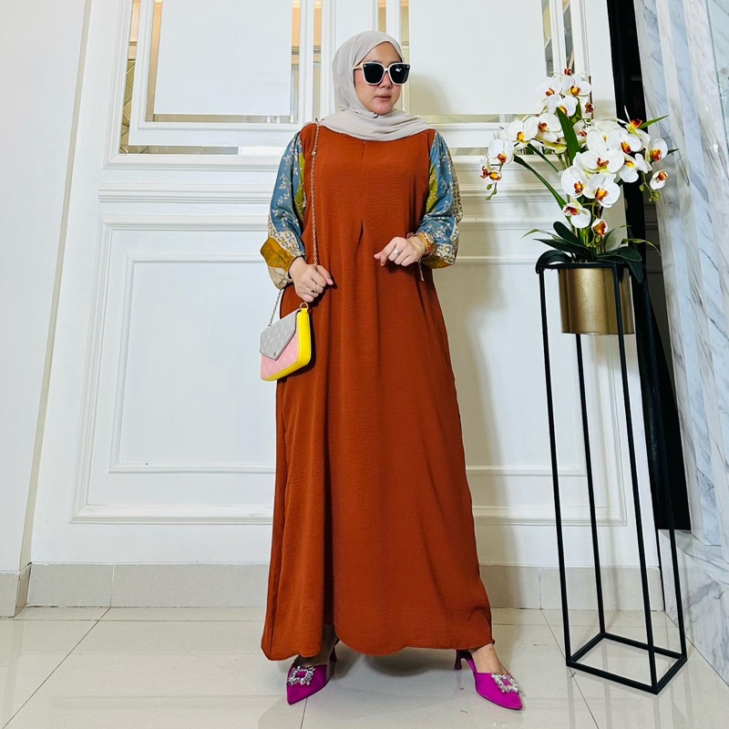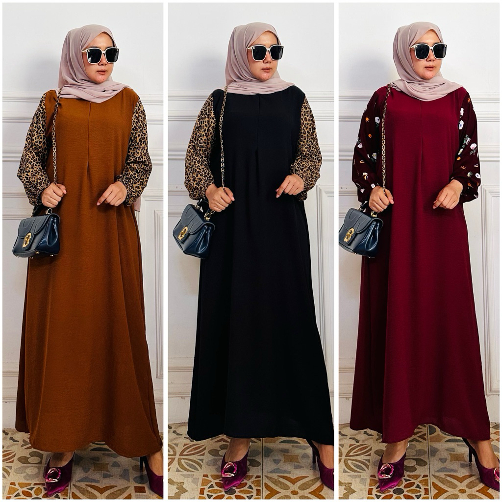 Aisyah Dress Gamis Cringkle Airflow Kombinasi Ld120 pb 130 Busui