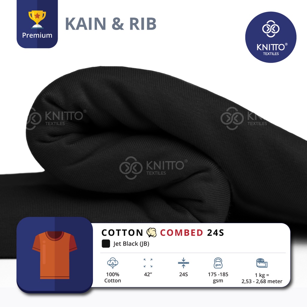 KAIN KAOS COTTON COMBED 24S JET BLACK BAHAN KAOS KNITTO