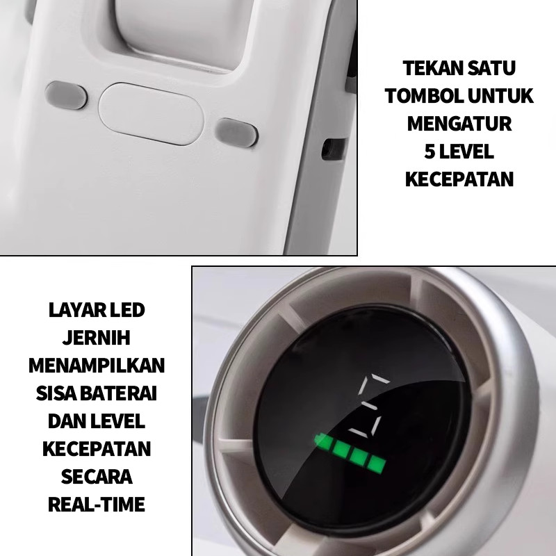 Kipas Angin Portable Lipat 180° 1800mAh 5 Level I Kipas Lipat Meja Charger Type-C LED Display + Tali Leher