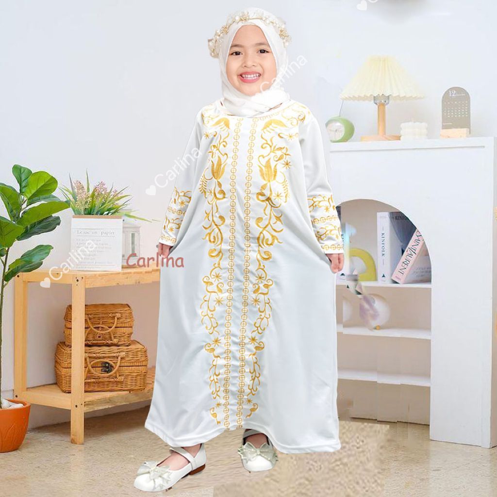 CARLINA Abaya Gamis Arab Hitam Putih Bordir Mewah Syahbah Anak Perempuan