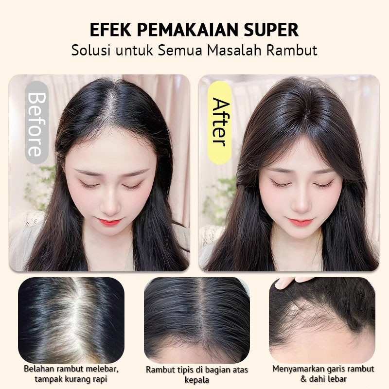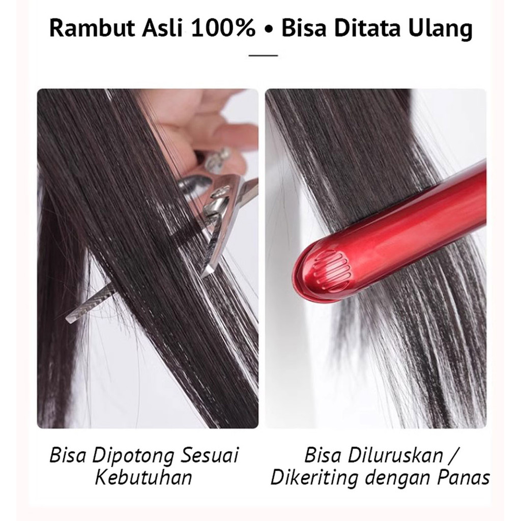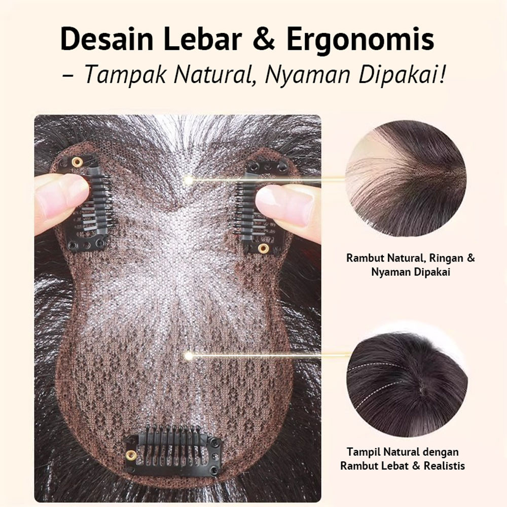 Wig Poni Belah Tengah Wanita – Tebal & Natural, Tutupi Rambut Putih, Rambut Asli, Bisa Dicat