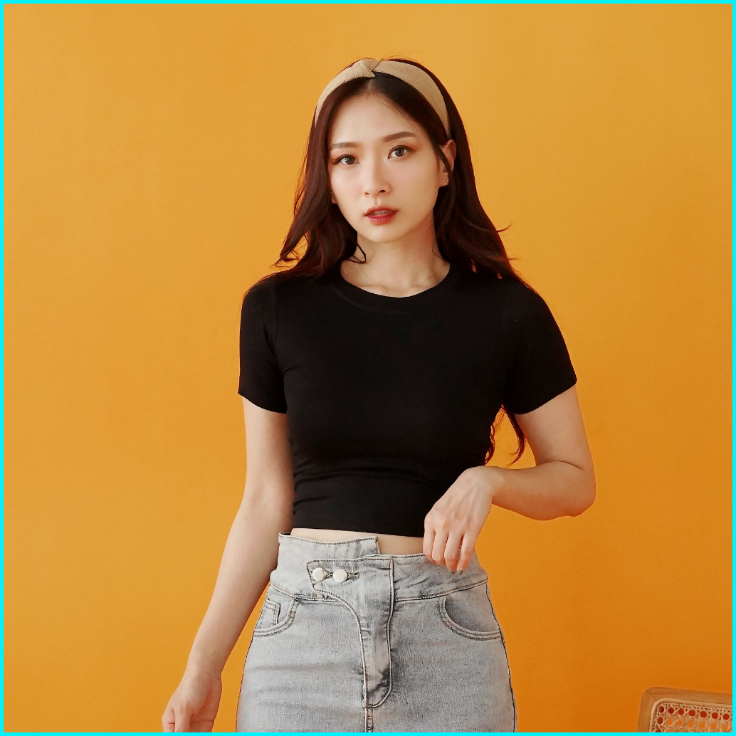 Oroy Kaos Polos Korean Atasan Crop Top Tee Wanita Basic Or0250
