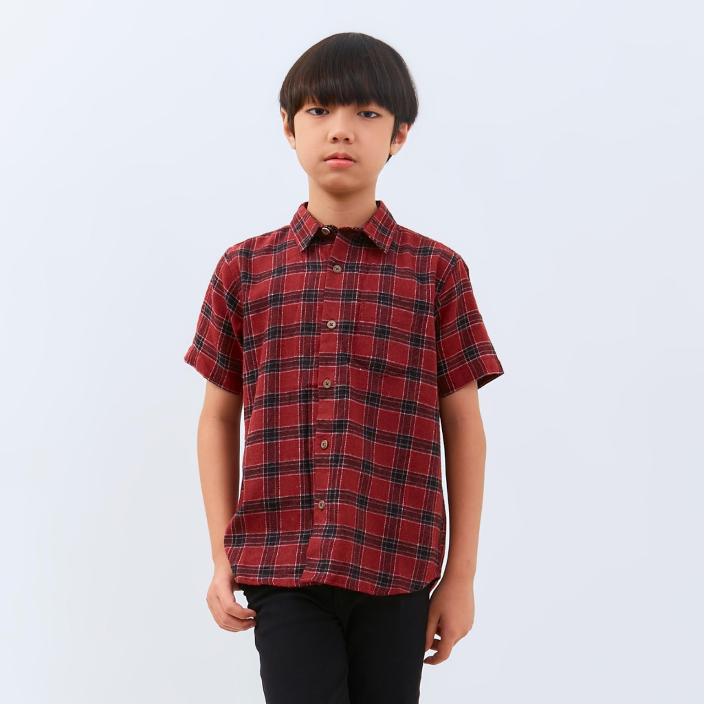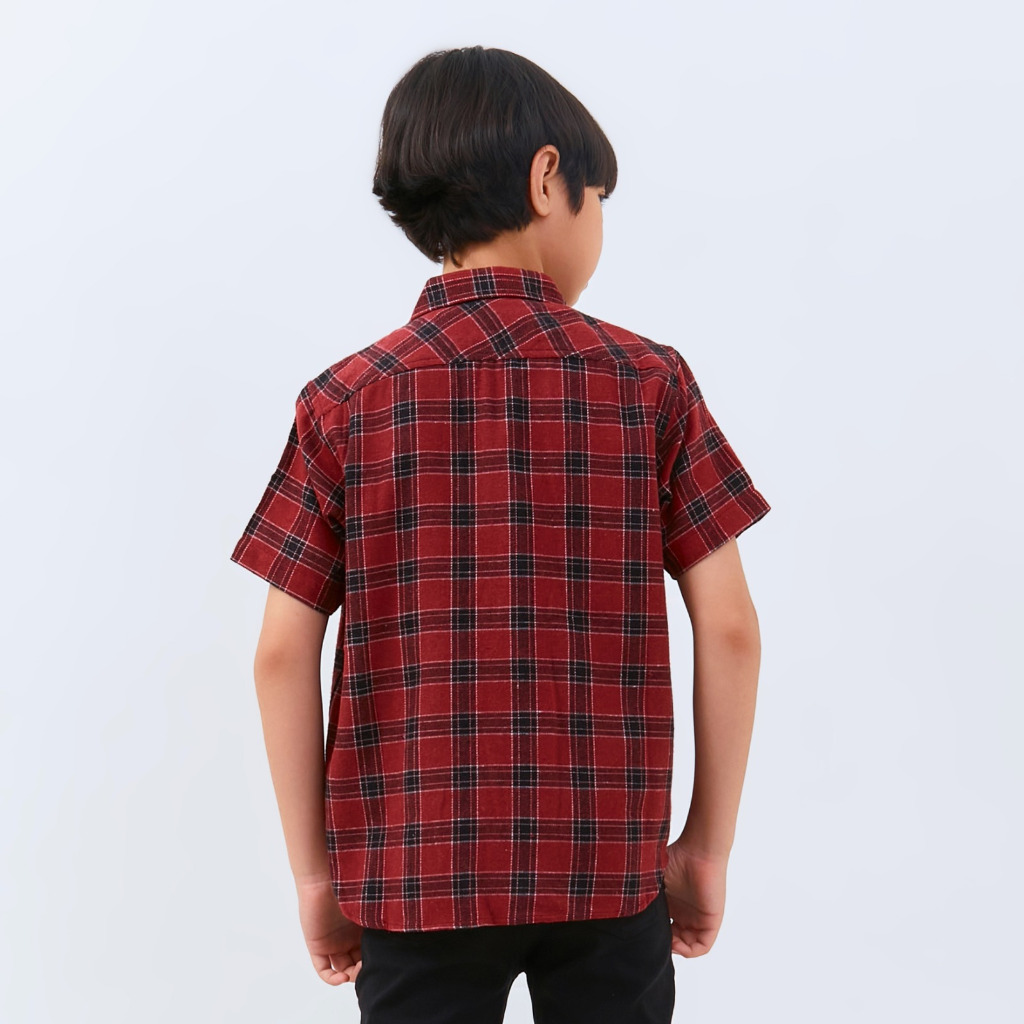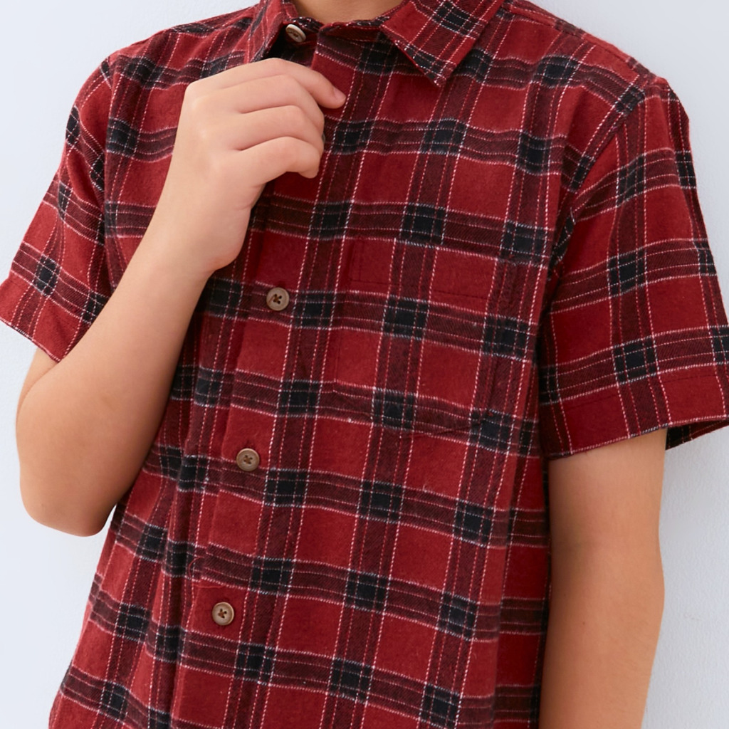 M231 Kemeja Anak Laki Laki Flannel Pendek Maroon 2791