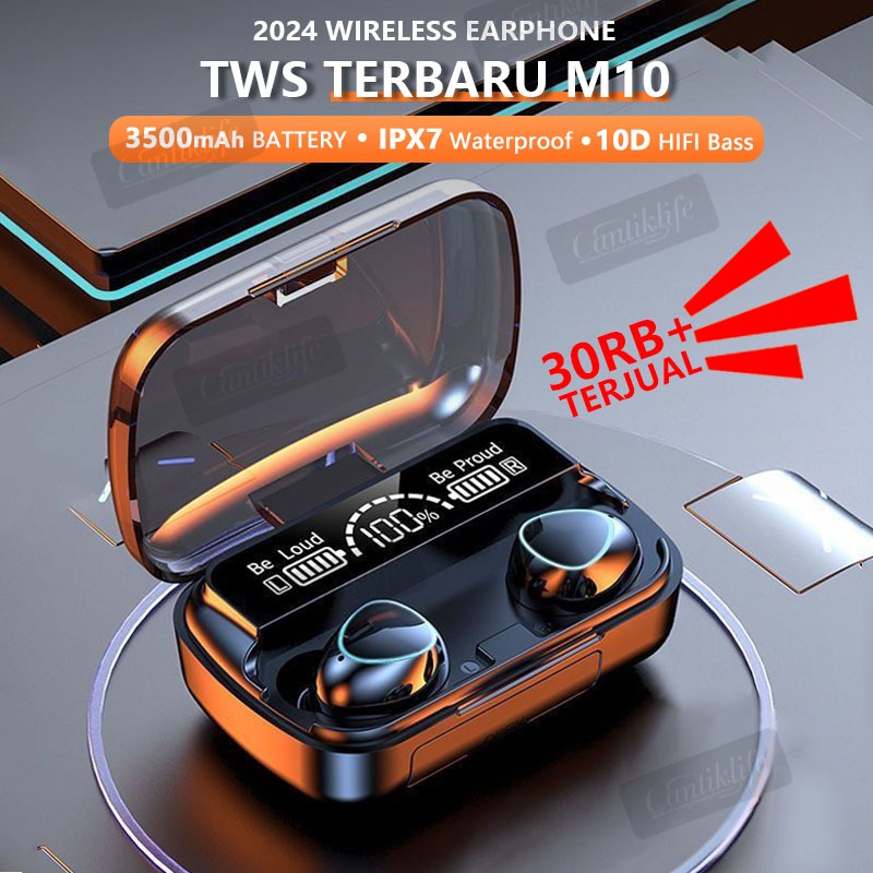 M10 Headset Bluetooth Full Bass Stereo 3500mAh Power Bank Wireless Earphone Tahan Air TWS With Mic Headphones Handset Ea
