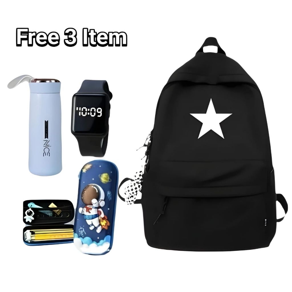 PAKET BANYAK BONUSNYA TAS RANSEL ANAK SEKOLAH SD SMP PRIA WANITA GENDONG PUNGGUNG BACKPACK SIMPEL HITAM