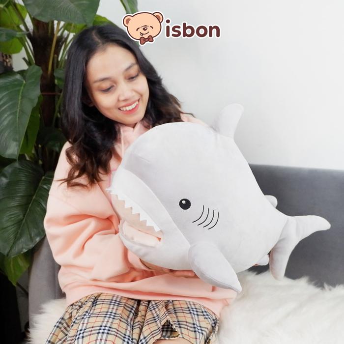 ISTANA BONEKA HIU SHARKY PENGHANGAT TANGAN MAINAN BANTAL ANAK KADO ULANG TAHUN COWOK CEWEK OCEAN NON ALERGI HALUS LEMBUT - SHARKY GREY, 33IN 83CM