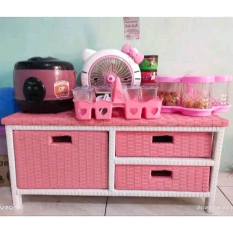Meja Tv Rotan Sintetis Meja Rak Laci 3 Serbaguna