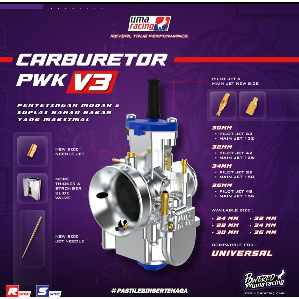 KARBURATOR NEW PWK V3 24 MM / 28 MM / 30 MM / 32 MM / 34 MM / 36 MM - ORIGINAL UMA RACING