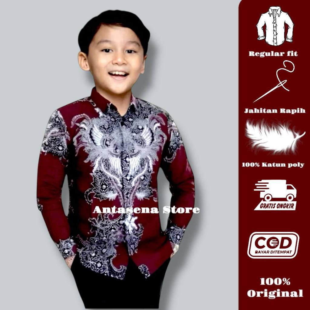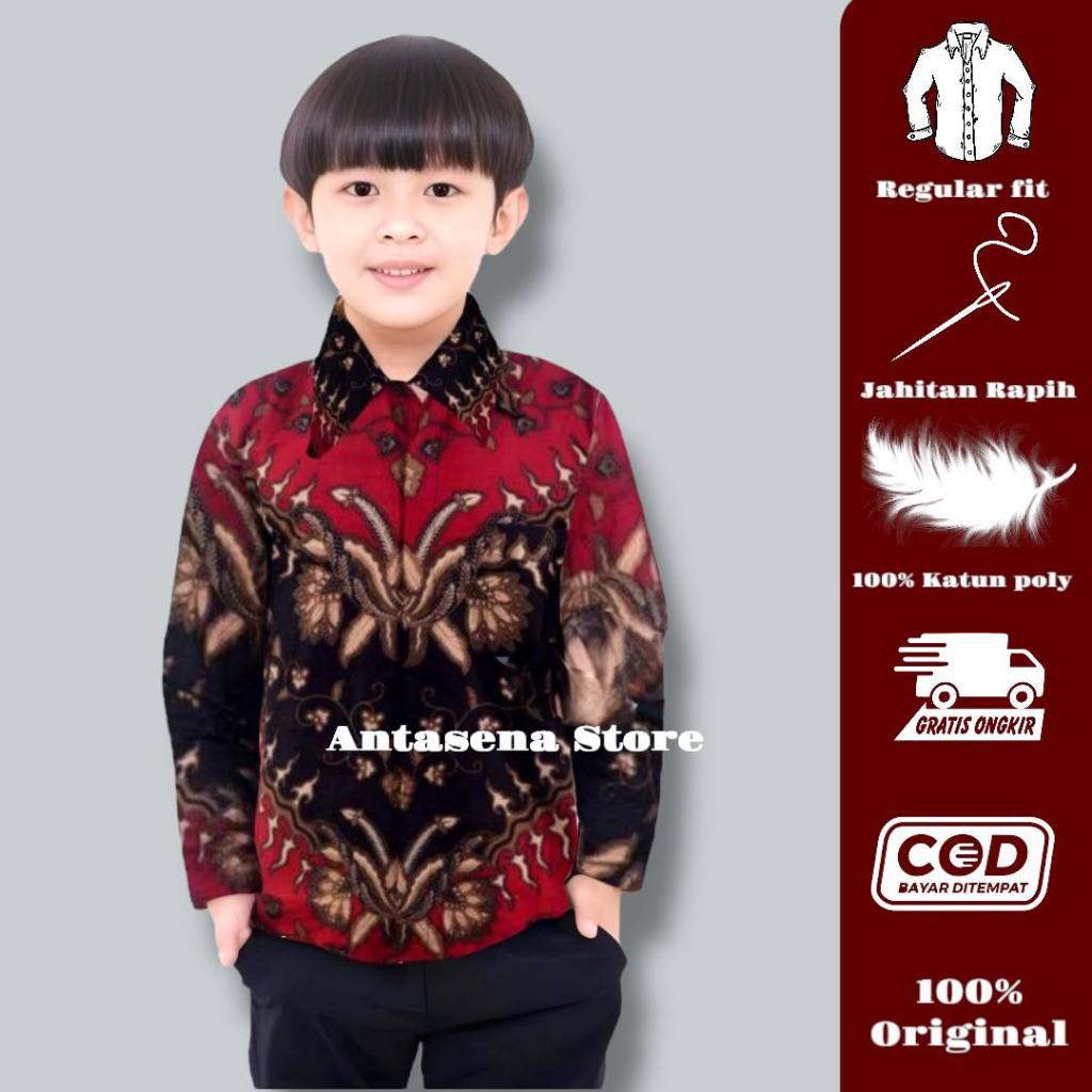 Antasena Store Kemeja Anak Lengan Panjang S M L XL XXL Kemeja Batik Anak laki laki umur 1-12th || Batik anak laki laki lengan panjang modern Warna Hitam Manis Biru Denim Maron
