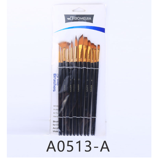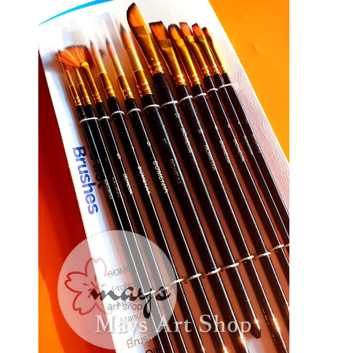 [12 Pcs] Kuas Lukis Set Isi 12 Pcs - Premium Quality Artist Paint Brush - Kipas Fan Flat Round Angular Lancip Acrylic Oi