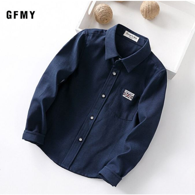 Kemeja Anak-anak Putih Kasual Warna Solid Katun 100 PERSEN / Kemeja Putih Lengan Panjang Kerah Turn-Down Anak-anak / Kemeja Untuk Anak Laki-laki Anak-anak Atasan Polos