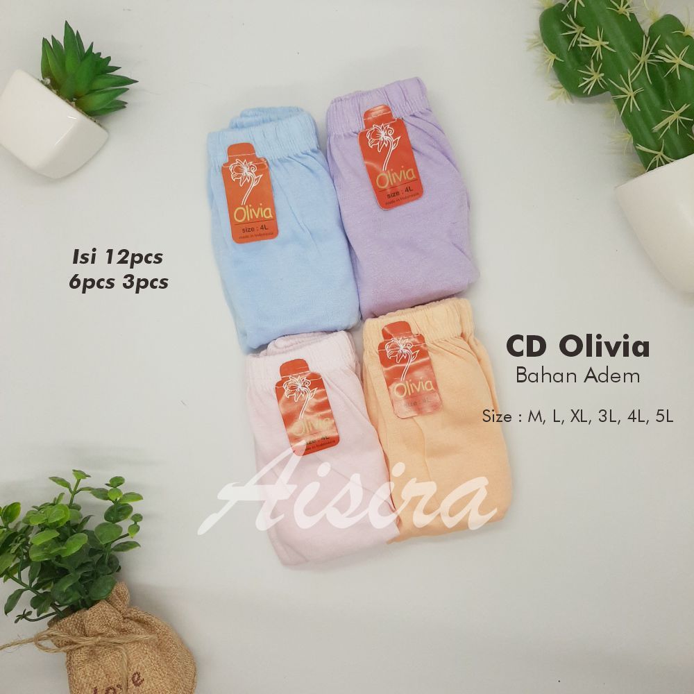 AISIRASHOP - Olivia Celana Dalam Wanita Dewasa Jumbo Polos Lusinan Bahan Katun Isi 12pcs 6pcs 3pcs