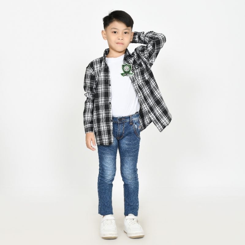 BOY MOM Kemeja Flanel Anak Laki Laki Lengan Panjang Kemeja Anak Premium 2-13 Tahun