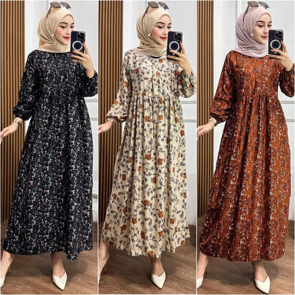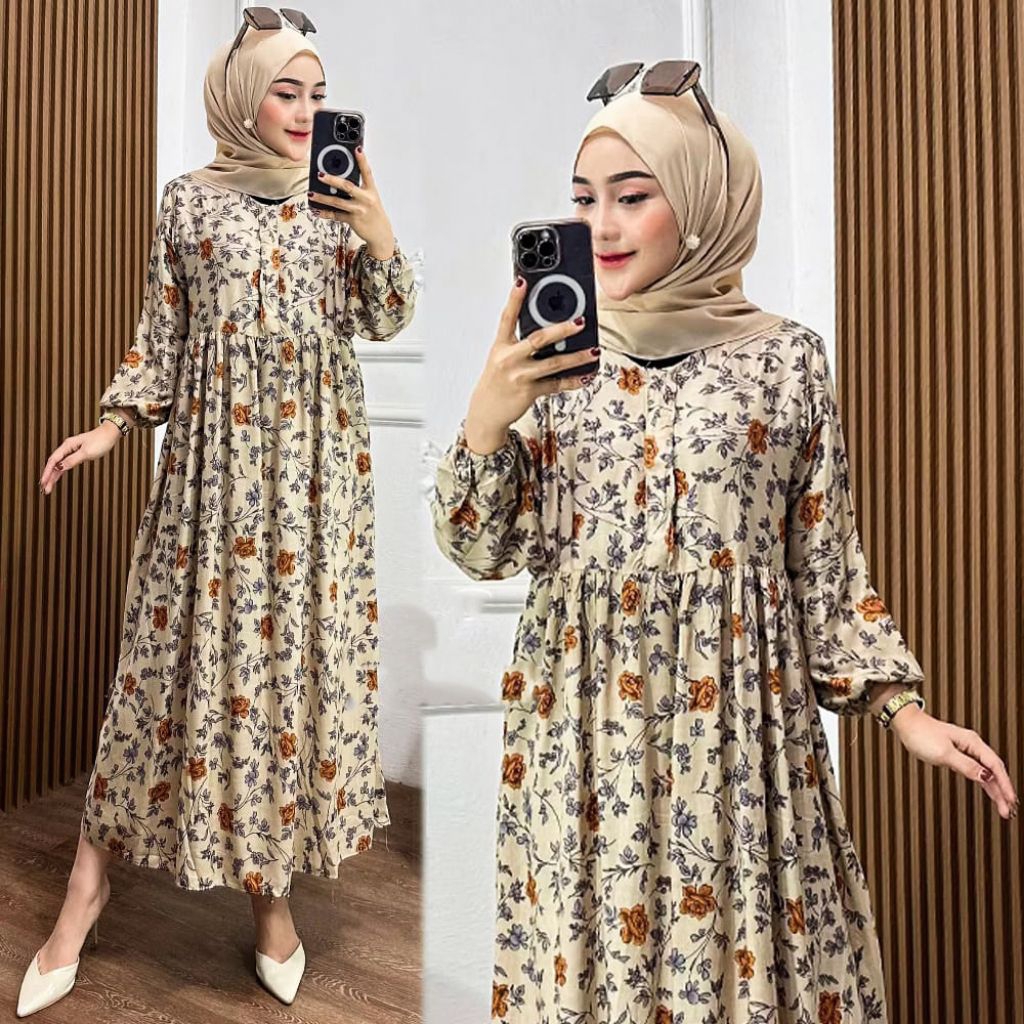 MIDI DRESS WANITA RAYON GAMIS RAYON ADEM BUMIL BUSUI FRIENDLY JUMBO New