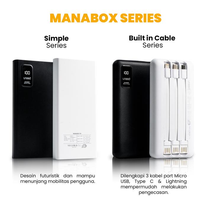 UNEED POWERBANK MANABOX 10000 20000 30000MAH QUICK CHARGE 3.0 PD22.5W - CABLE QC-PD 10K, HITAM