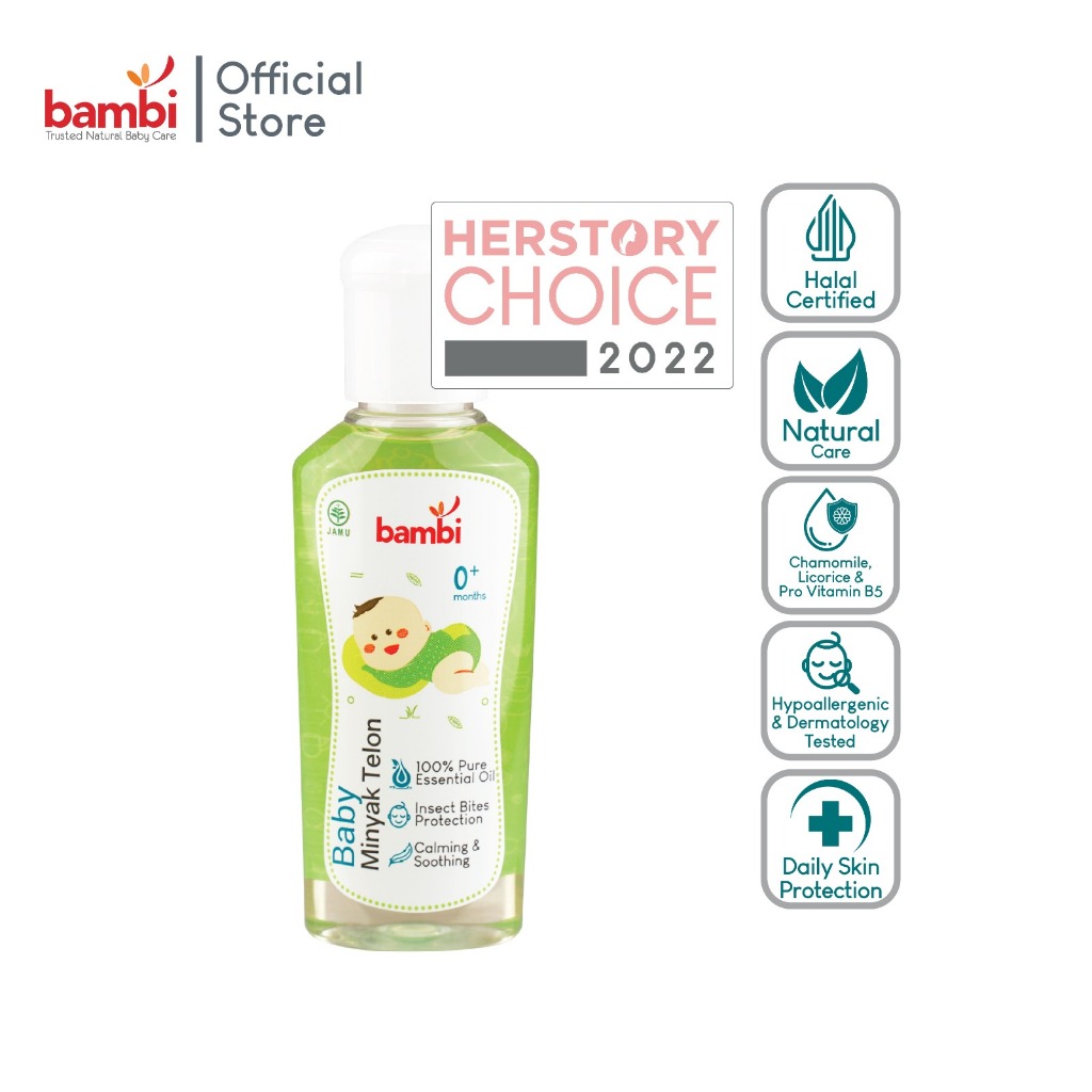 Bambi Baby Minyak Telon 60ml 0+ Minyak Telon kulit Normal Sensitif Menghangatkan Tubuh, Meredakan gejala kembung pada anak
