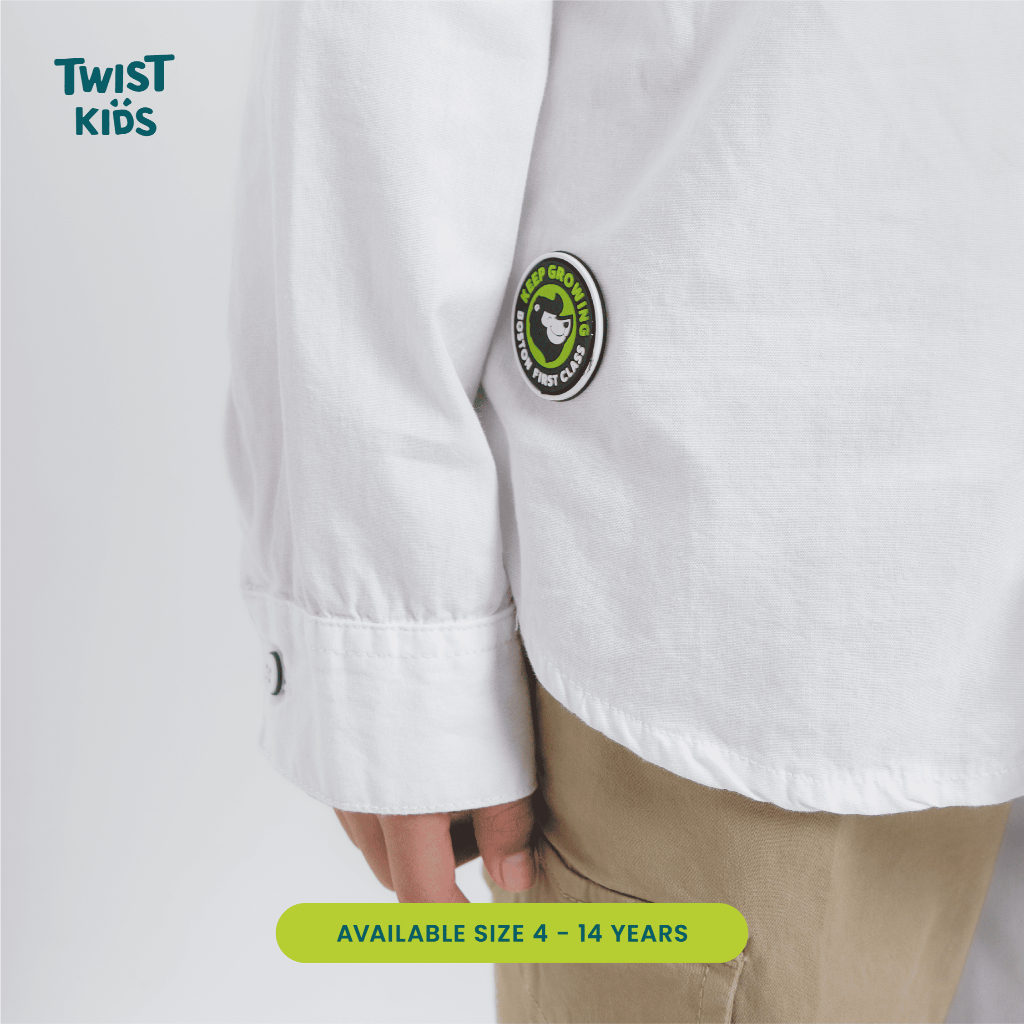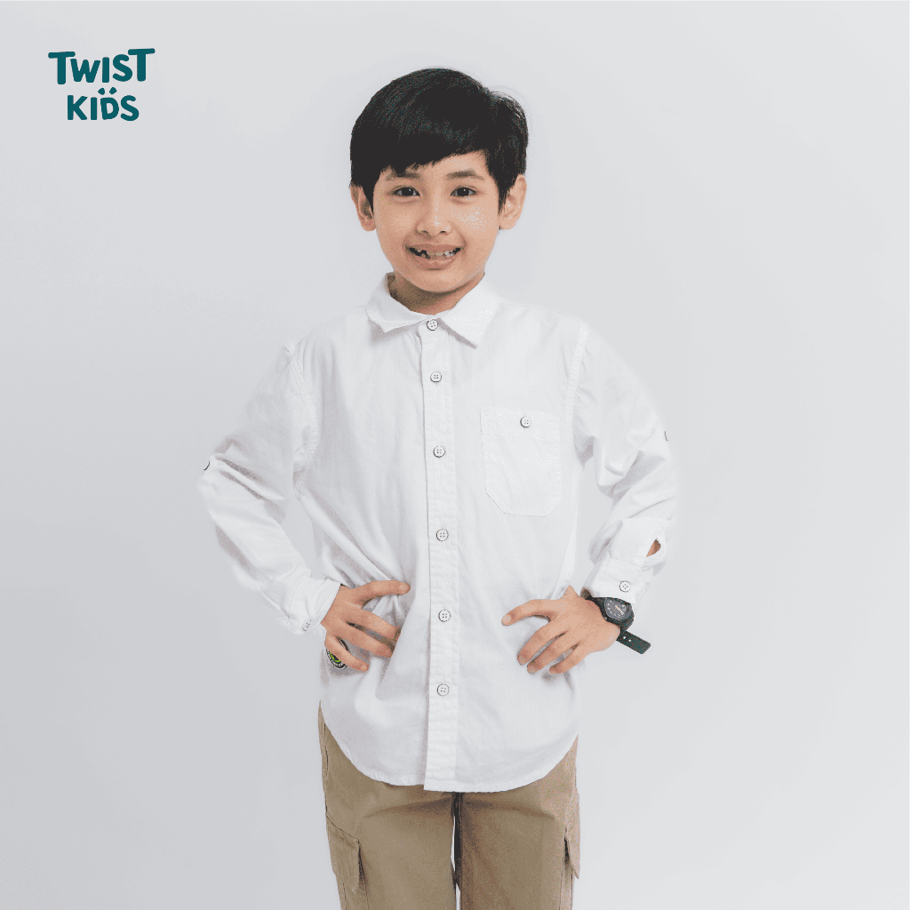 Twist Kids - Walter C, Back to School Series, Kemeja Lengan Panjang Putih Polos Anak Laki-Laki
