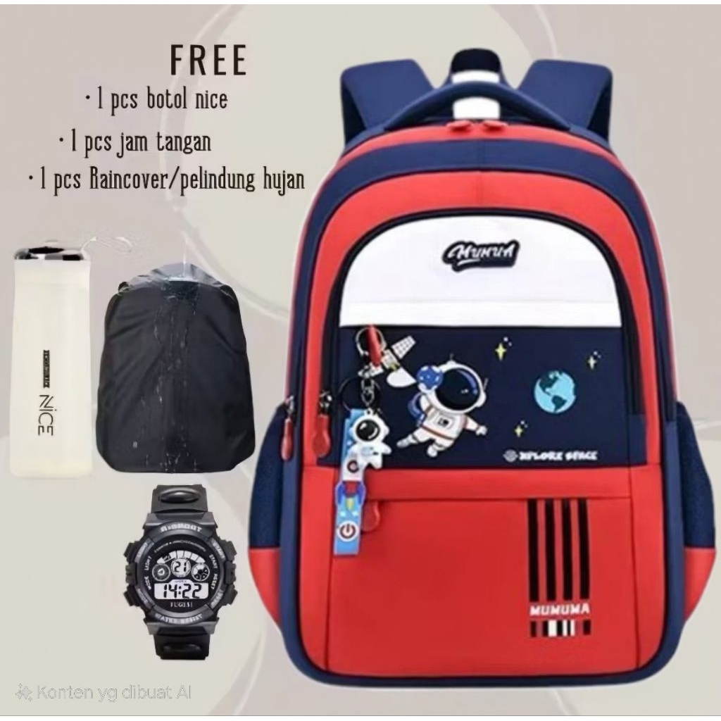 TAS RANSEL SEKOLAH ANAK LAKI LAKI SD 4 IN1 GRATIS RAINCOVER JAM TANGAN BOTOL MINUM