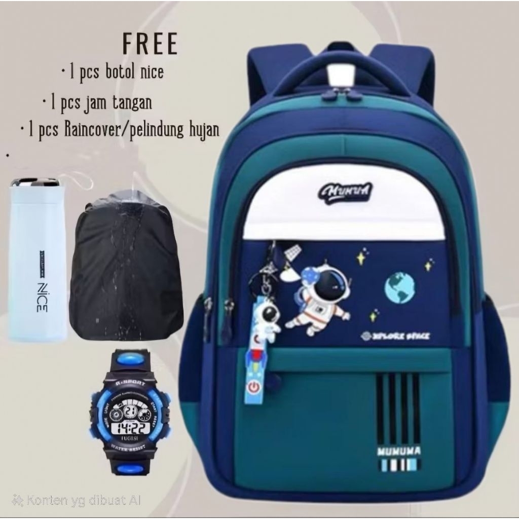 TAS RANSEL SEKOLAH ANAK LAKI LAKI SD 4 IN1 GRATIS RAINCOVER JAM TANGAN BOTOL MINUM