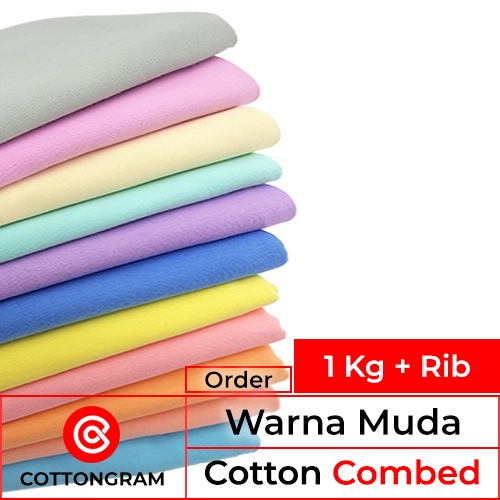 COTTONGRAM Kain Kaos Cotton Combed 24s 30s Premium Bahan T Shirt Warna Muda per Kg