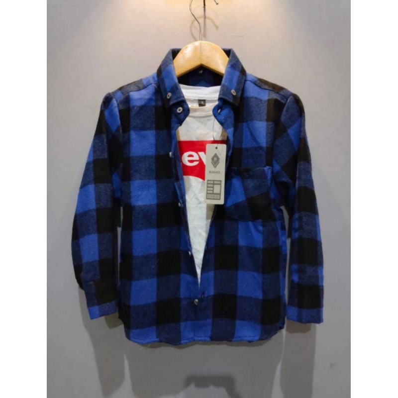 Kemeja Atasan Anak Flanel Lengan Panjang Usia 5-12 Tahun