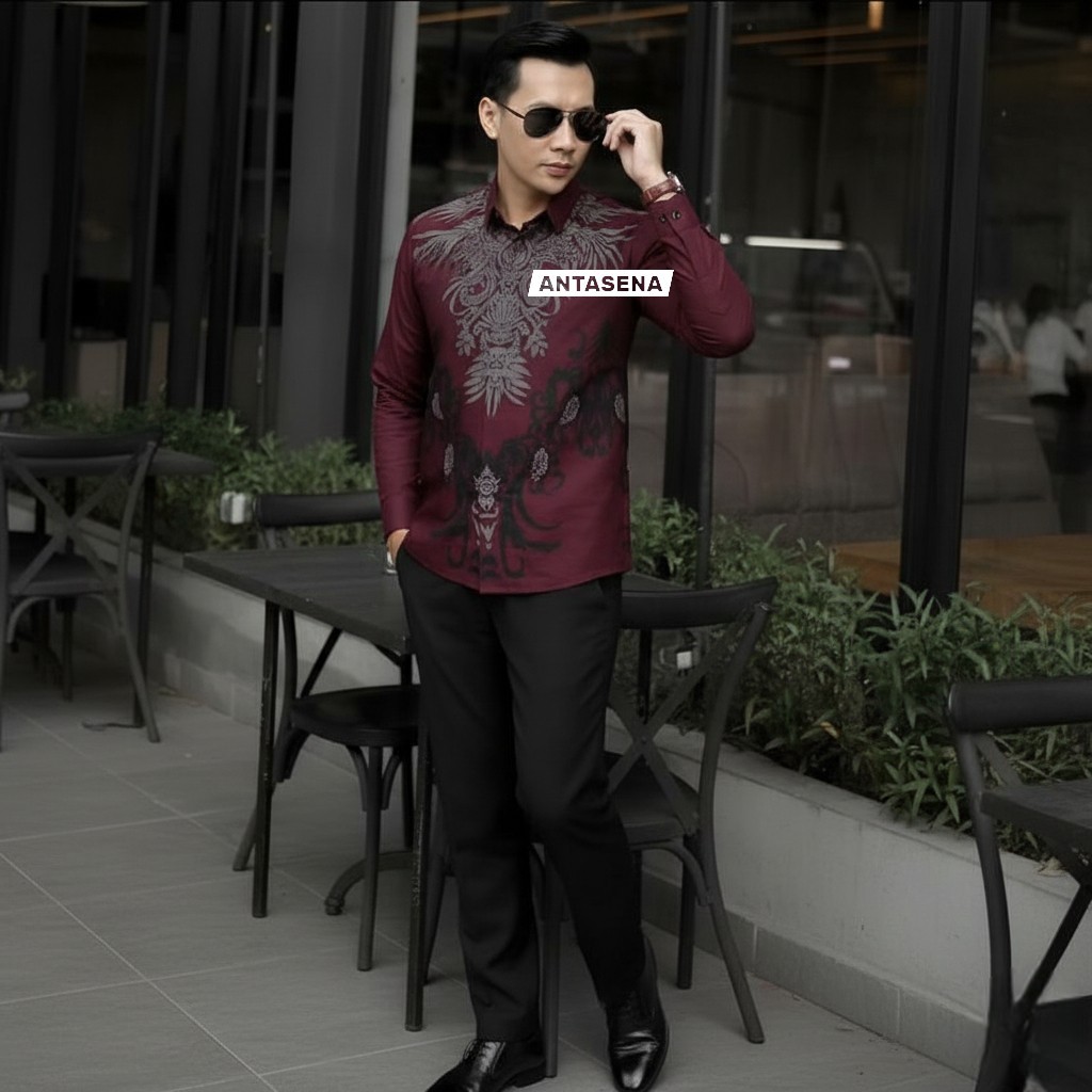 TERBARU BATIK LENGAN PANJANG DAN PENDEK KEMEJA PRIA DEWASA ANAK LAKI LAKI WARNA BURGUNDY