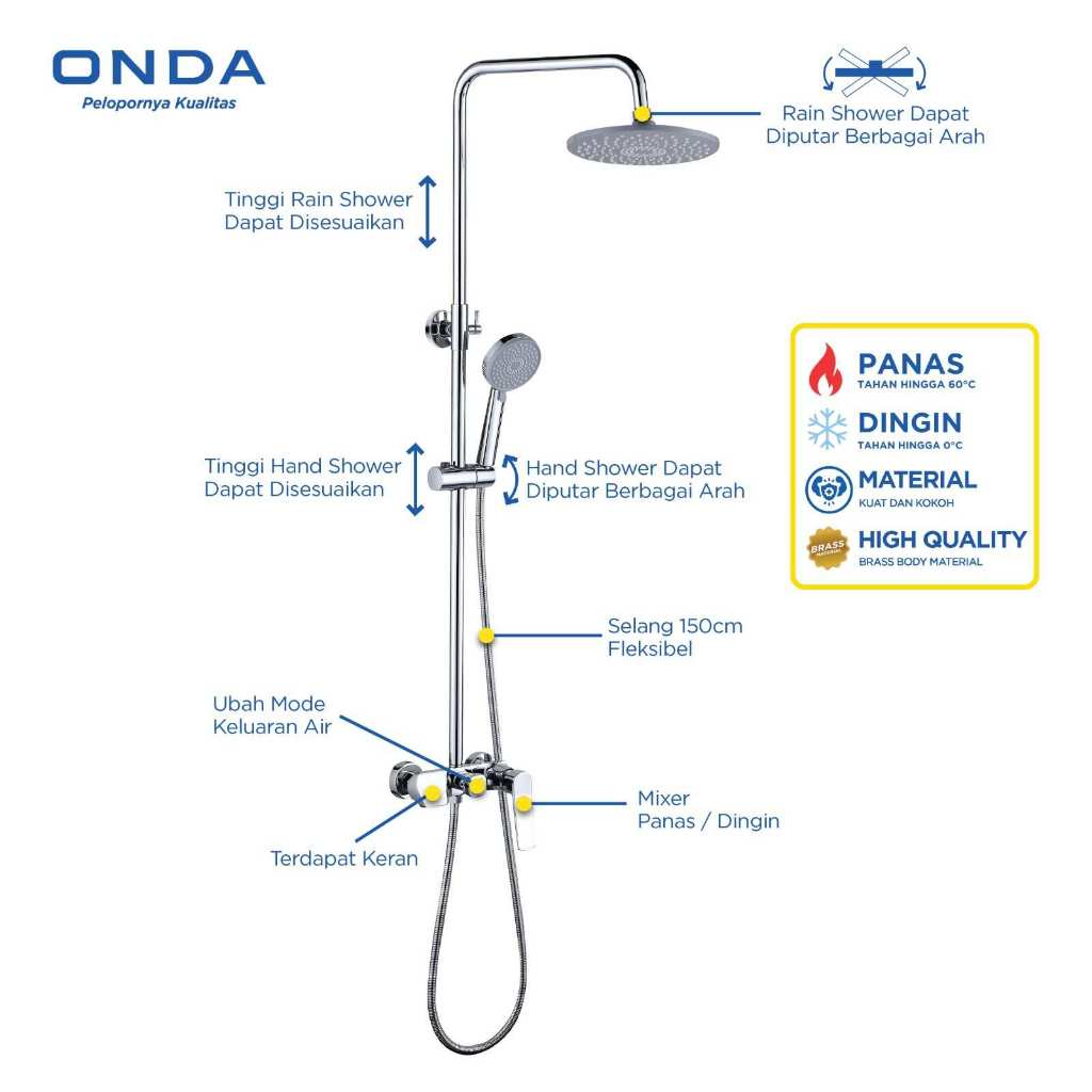 Onda Rain Shower Set Kamar Mandi 3 In 1 Rs Renew Shower Tiang Komplit Kran Panas Dingin Anti Bocor
