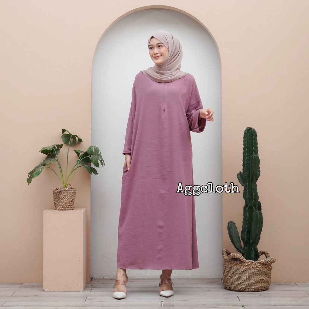 LONG DAILY LONGDRESS CRINKLE AIRFLOW SEMI ABAYA TANGAN PANJANG aggcloth