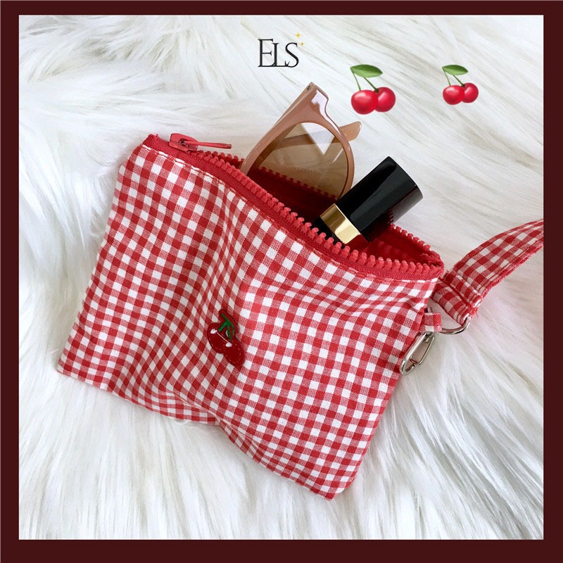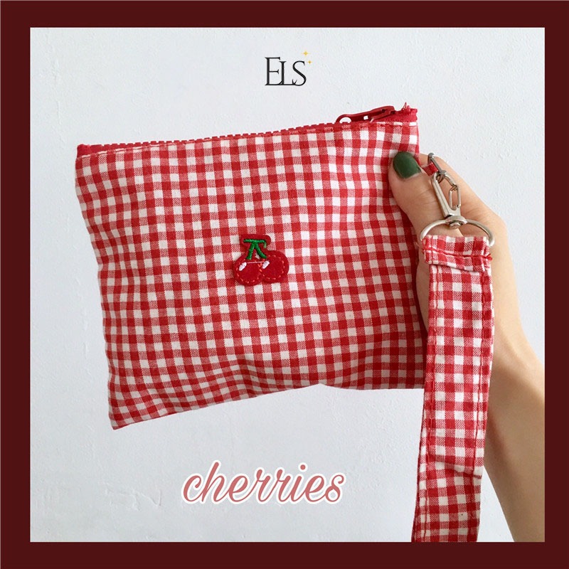 ELSA COSMETIC POUCH CHERRY MERAH LUCU 16X13CM