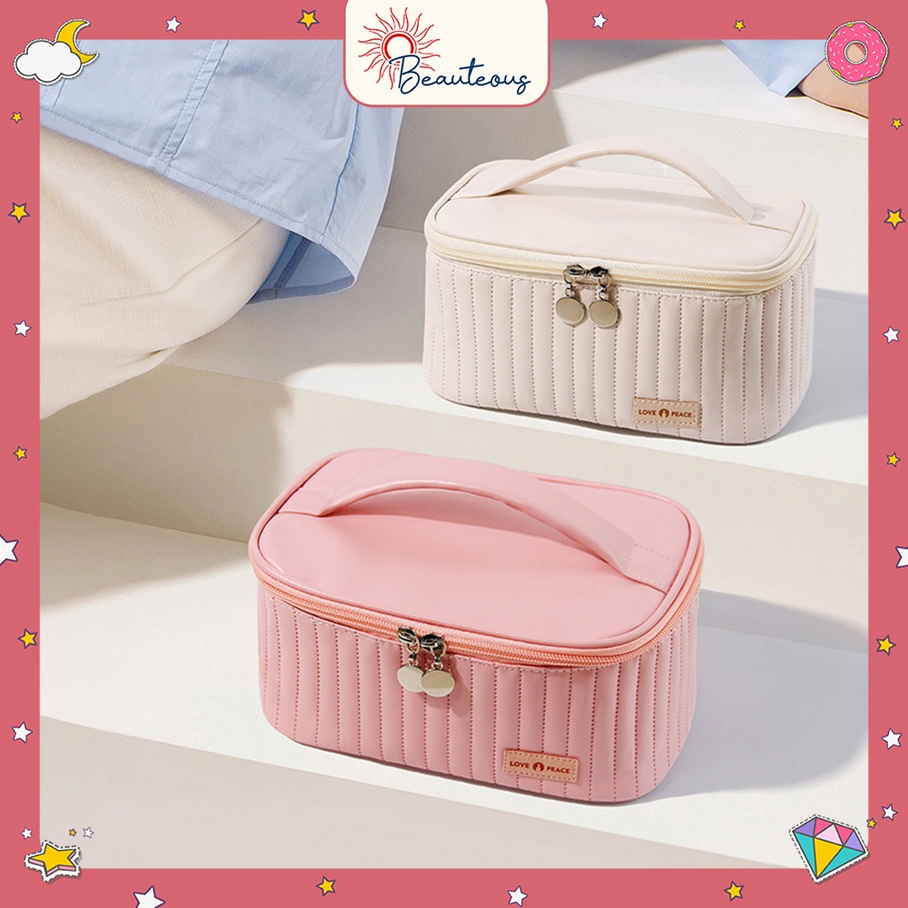 TAS KOSMETIK MAKE UP MAKEUP COSMETIC BAG TRAVEL TOILETRY POUCH SKINCARE WANITA PUFF WATERPROOF