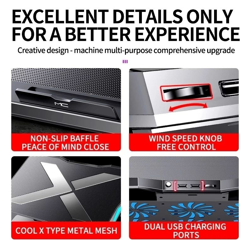 Cooling Pad Laptop Gaming 6 Fan Kipas Pendingin Laptop Kipas Cooler Q3