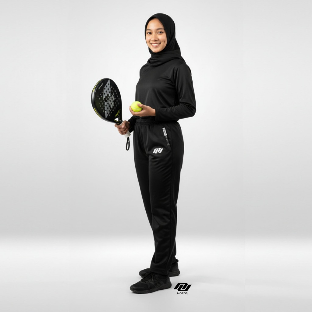Celana Olahraga Training Sport Panjang Jogger Hitam Unisex Running Gym Noron White Logo